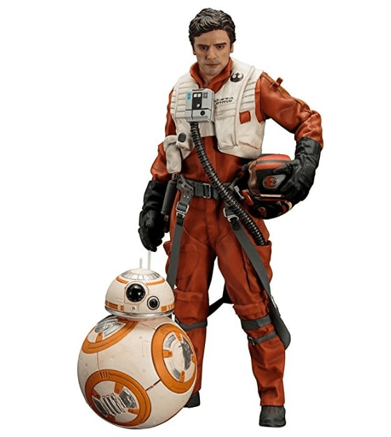 Figurine Star Wars représentant à la fois Pau Dameron et son droïde BB-8. Cette figurine vient tout droit du monde de l’épisode VII de Star Wars et sort des ateliers de Kotobukiya; les plus passionnées reconnaîtrons tout de suite la qualité.